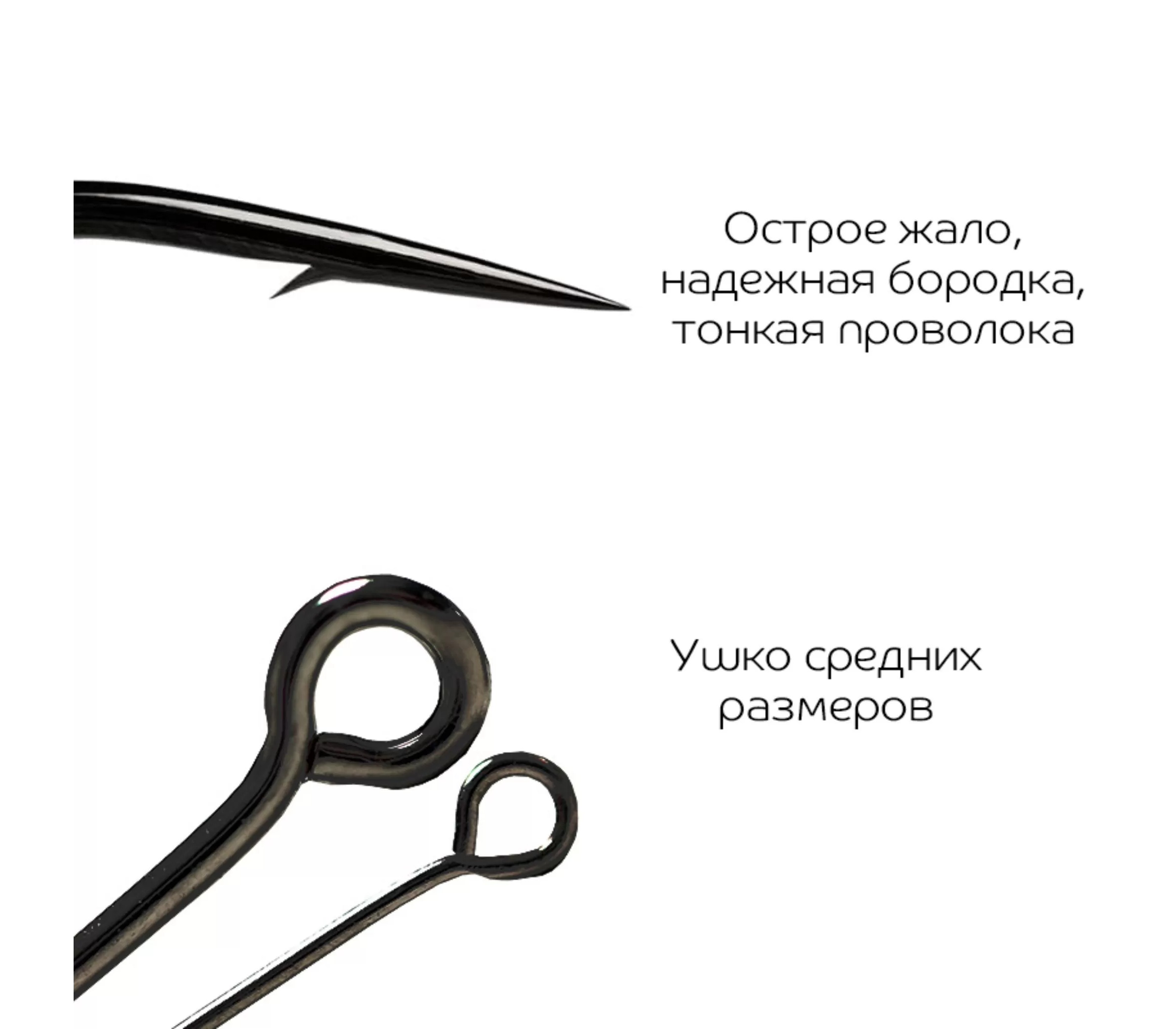 Острое жало S hook надежно пробивает губу рыбы даже во время аккуратных поклевок, а тонкая проволока надежно зафиксирует рыбу и не даст ей сойти. Это самые тонкие наши крючки, диаметр проволоки в нано-размерах начинается всего от 0.38 мм!